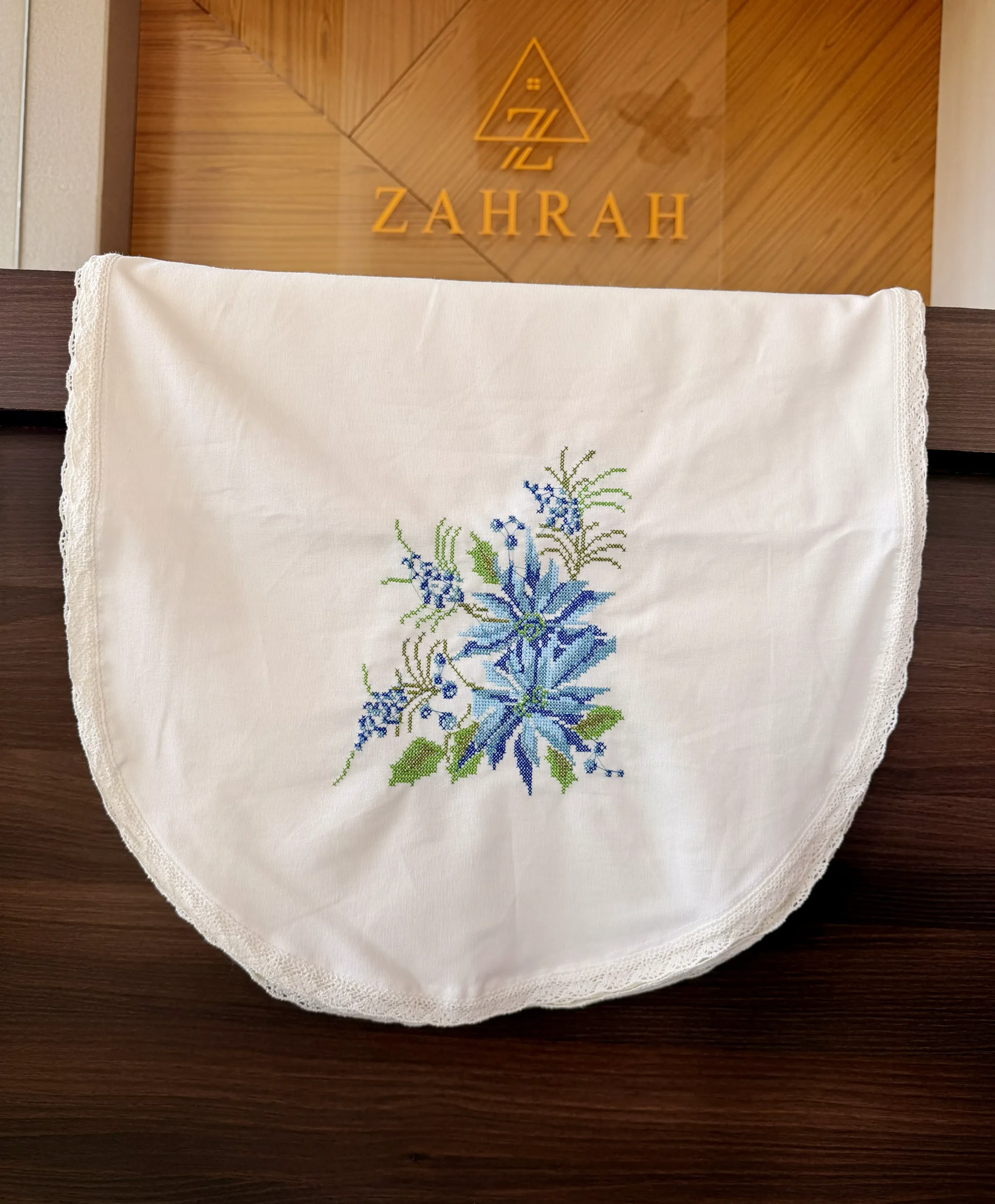 Blue Starflower Embroidered Chair Back Cover – Traditional Cross-Stitch