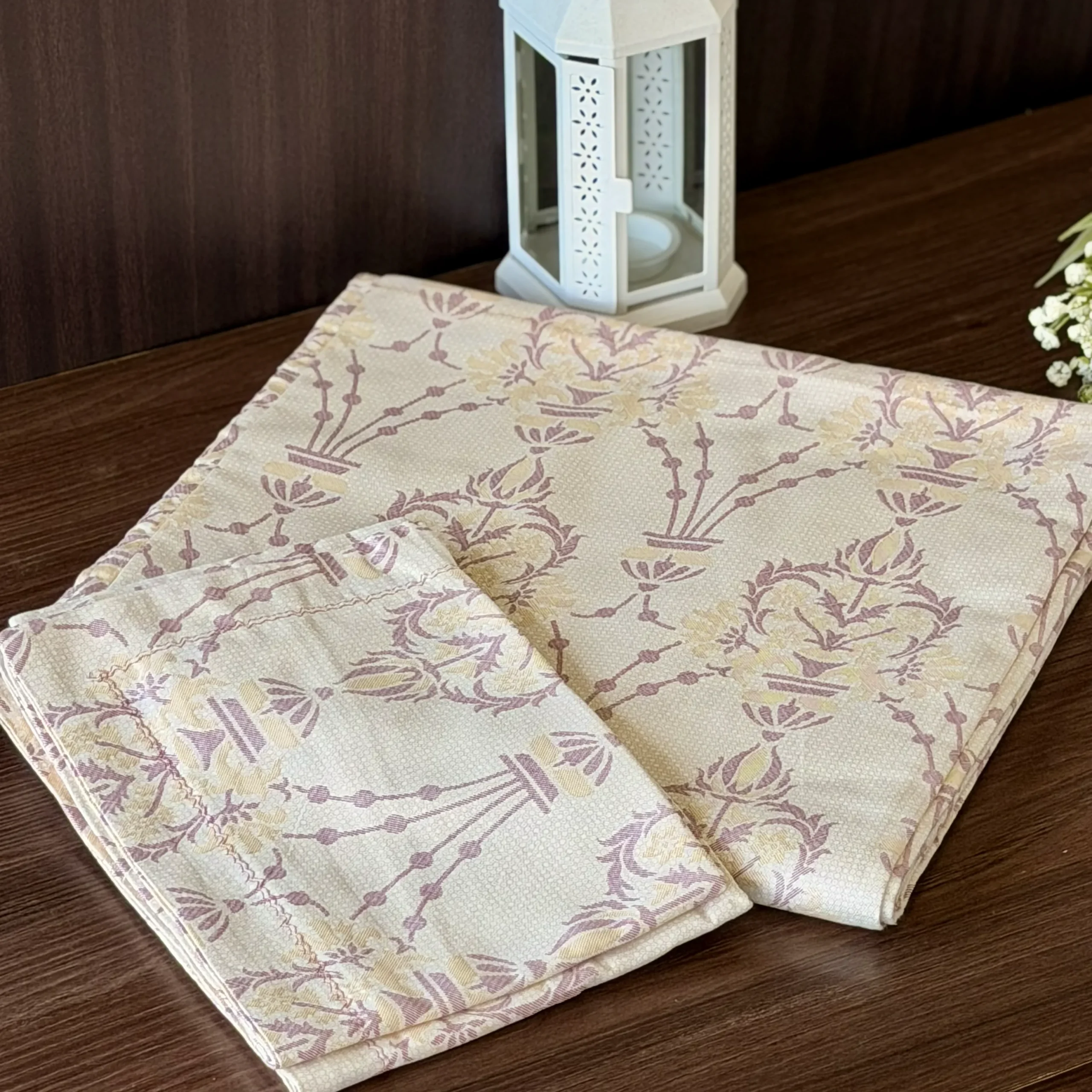 Premium cotton bed sheet with lace detailing pillowcases king size 1